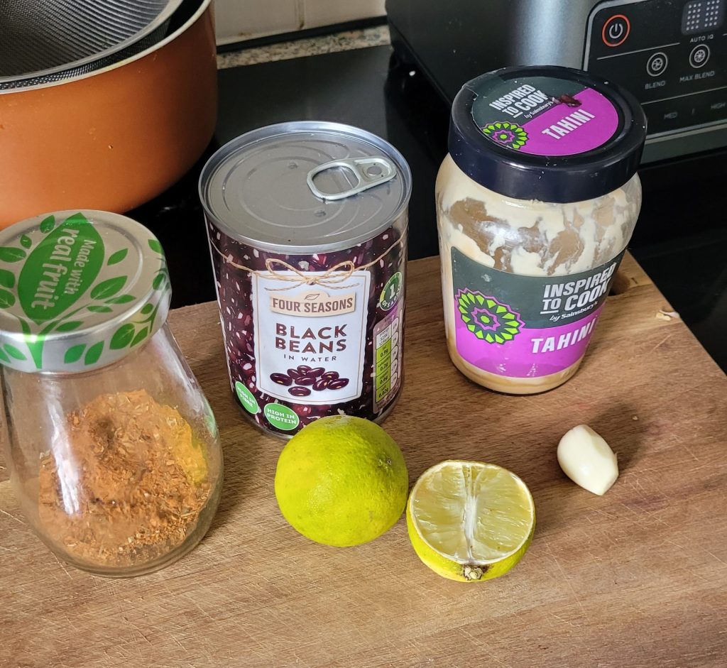 Cooking beans from dry is by far the best way to get value for money as well as the best flavour. But it does take time. And canned beans are just so convenient. So for this recipe, all you need is a can of black beans, as well as your usual suspects for a good hummus: tahini and garlic. Normally hummus using cumin as a seasoning, but for this dip, we will use a Cajun mix for added depth. And instead of lemon, we will use fresh lime.