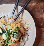 Serve with rice noodles, and top with sesame seeds, fresh spring onions and a drizzle or Sriracha sauce for a spicy kick.