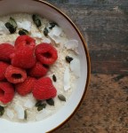 Simply top your cooked porridge with fresh raspberries, a few pumpkin seeds and shards of coconut.
