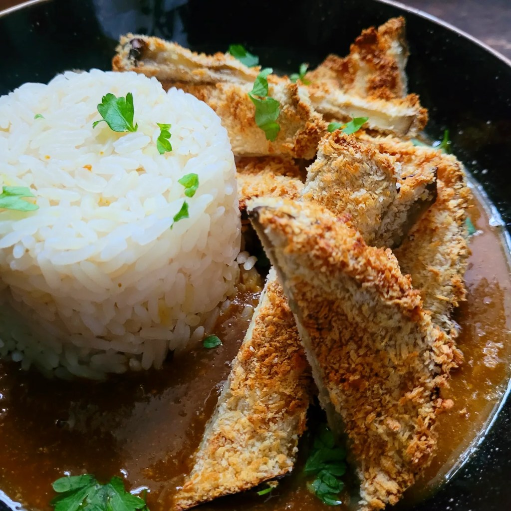 Yasai Katsu Curry featuring aubergine is the perfect combination of rich and comforting flavours, wrapped in a crispy, golden-brown crust.