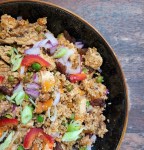 Laden with bell peppers, spring onions, red onions, peas, sultanas, and tofu, this dish has a perfect balance of texture and taste that will keep you coming back for more!