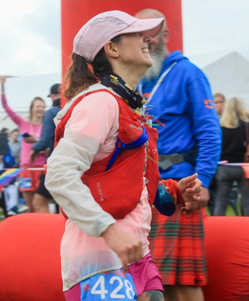 Lundavra, the penultimate checkpoint, appeared, heralding the final seven miles of the race. The undulating terrain made momentum a fickle companion, and doubts crept in. Hip flexors began to protest, and an audible pep talk, delivered in the third person, was the catalyst to resume running. The unexpected bonus checkpoint, a pit stop with refreshments, watermelon, coke and salt and vinegar crisps fuelled my spirit for the last dash into Fort William. Yet, just before the finish line, a cheeky climb emerged, testing my resolve. But the cheers, the whistles, and the palpable energy spurred me on. Tears welled up as I realised I was about to conquer my year’s goal.