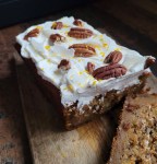 Indulge in the sumptuous delight of our Vegan Carrot and Pecan Loaf Cake, crowned with dairy-free cream cheese icing.