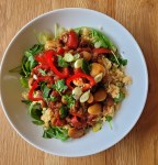 Discover the ultimate vegan delight with our Lentil & Mushroom Bean Medley recipe, enhanced with pomegranate molasses and served on a bed of fresh rocket and fluffy couscous. Packed with protein and flavour, this nutritious dish is perfect for a healthy dinner or meal prep.