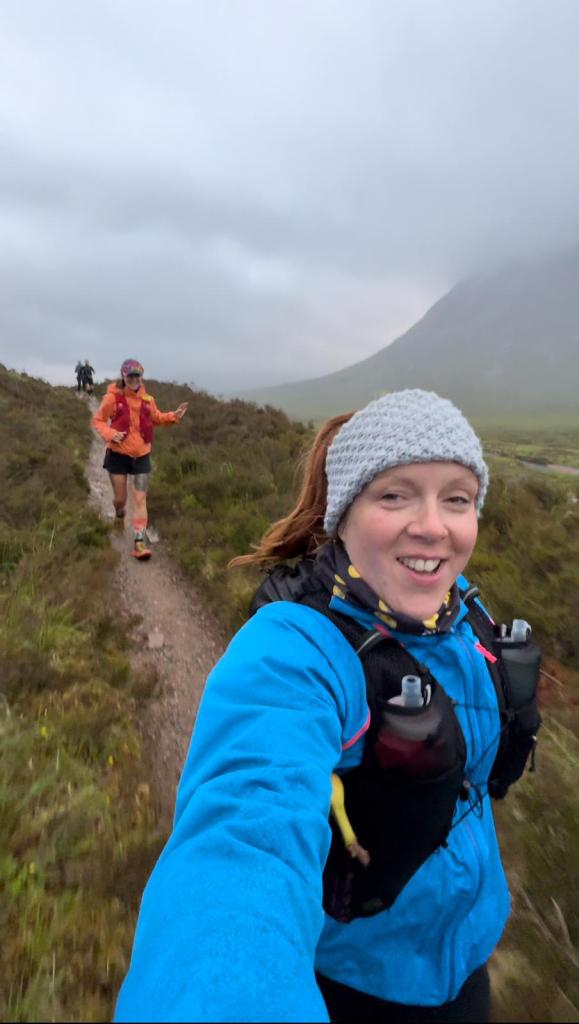 My mood was quickly zapped as we were made aware that there was an accident on the road near Glencoe which meant that crew would unlikely be able to meet until Kinlochleven, the last checkpoint, and 30 miles away! I selfishly went into disappointment and worry. Emily was meant to start pacing me from Glencoe, AND I’d have to take all my food, full waterproofs, headtorch, with me. In that moment I didn’t fully appreciate how selfish I was, that the accident was fatal, and in the grand scheme of things, what was I to complain about. So off I went, with a bit of sadness. I used this time to listen to some voice notes and read messages (the one section I seemed to have signal!) which allowed me to get some emotions out. It was a weird feeling here as, although I was really disappointed and worried I wouldn’t see them again, I realised I was crying but out of pride knowing that I was running the West Highland Way and I knew I would get to the end no matter what.
