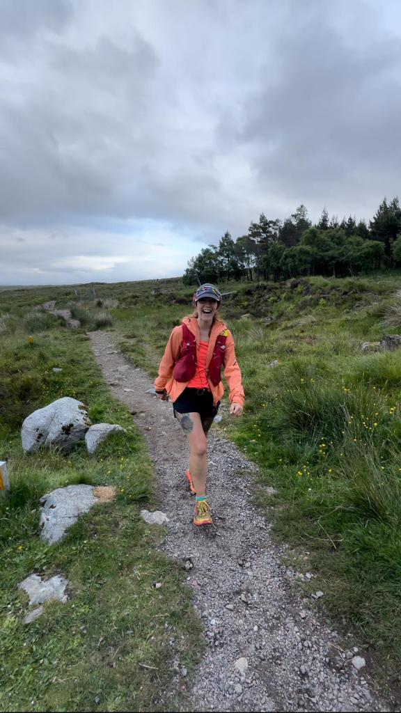 I got such a buzz heading into Auchtertyre, seeing many support crew vehicles leaving and all saying hello, cheering and waving. And then there was wee Emily waiting for me as I came in to the check-point! I was pretty pleased at how I was feeling at this point, and quite confident I had another decent set of miles in my legs before things started to hurt. I took some time here to sort out my feet. I don’t typically get blisters, but alas, this race I did. Always best to be prepared, so I reapplied a Compeed, and then shoved a good amount of lambs wool in my sock to create a lush pillow to prevent any discomfort. It’s something I’ve not tried before, but so glad I had it in my toolbox!