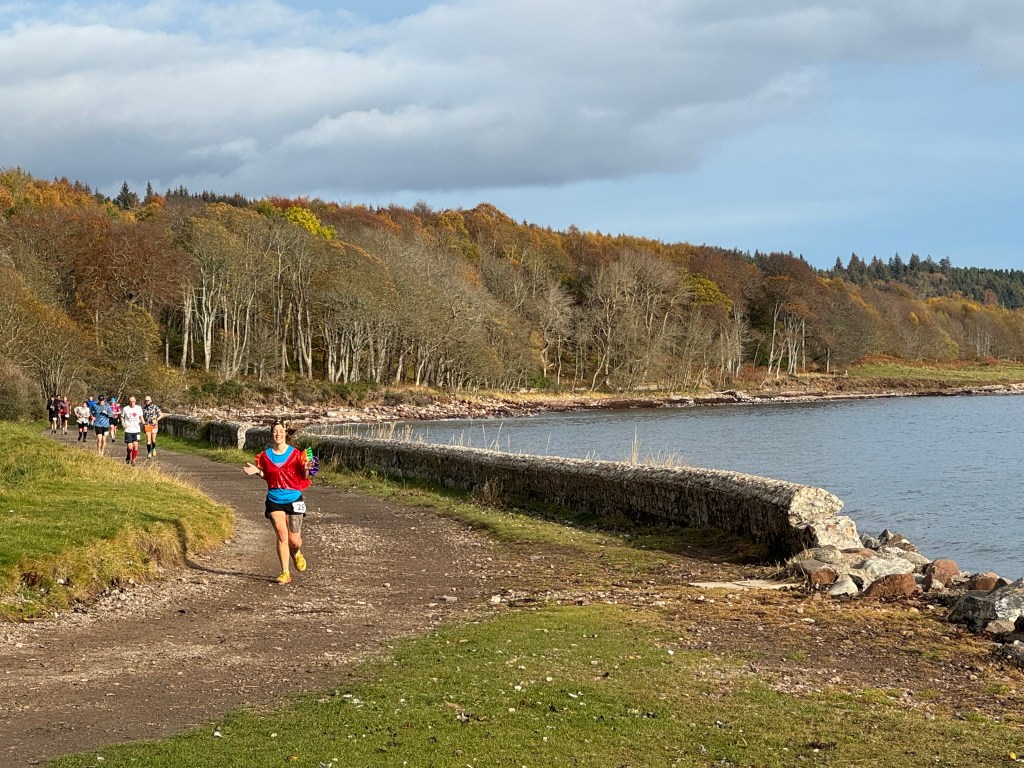 A secret to securing a strong mindset for each loop is starting out strong, tricking your body into thinking you’re still moving well. Golspie as the perfect route for this, with a good 5- minute flat stretch where you can run to the base of the first hill. I found myself at the front of the pack early in the morning and chuckled away to myself thinking how this experience will never happen in any other race. Being a fairly average-paced runner, I would never be at the front, so I enjoyed every second and it gave me that extra boost knowing my body was still moving well.